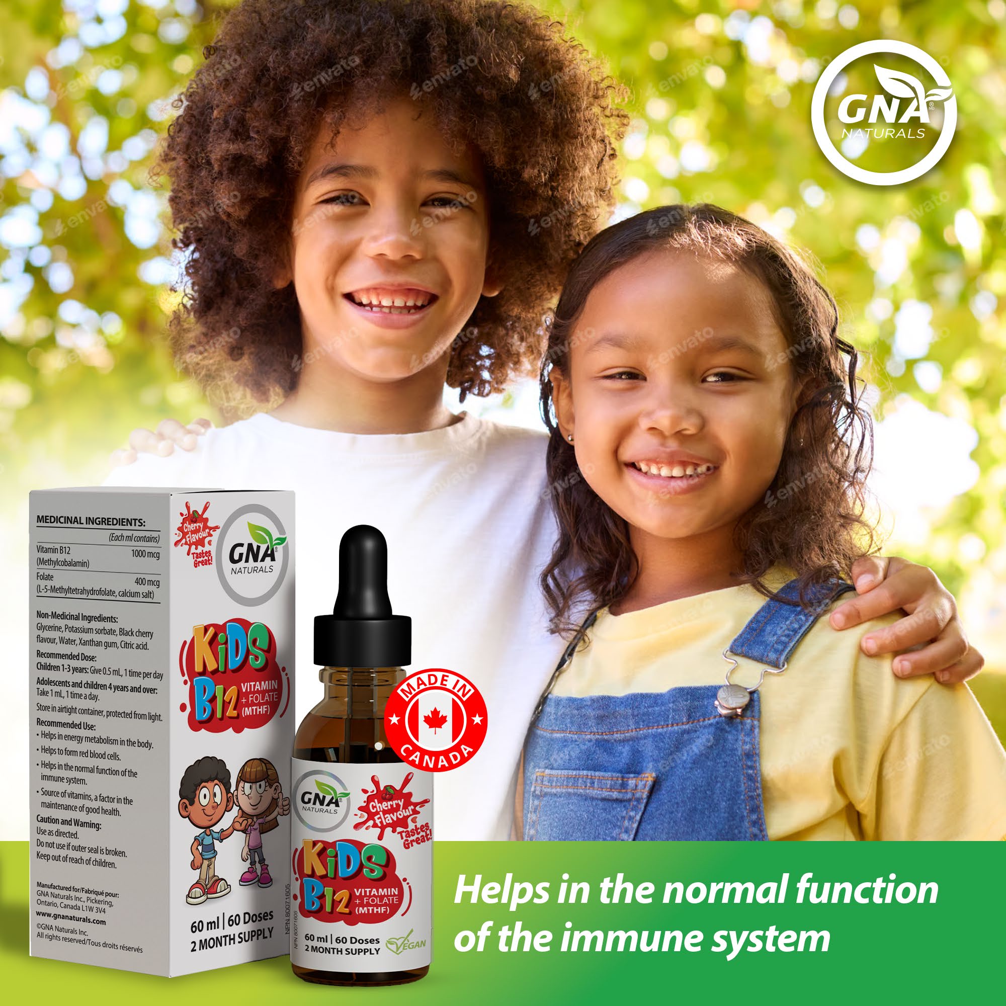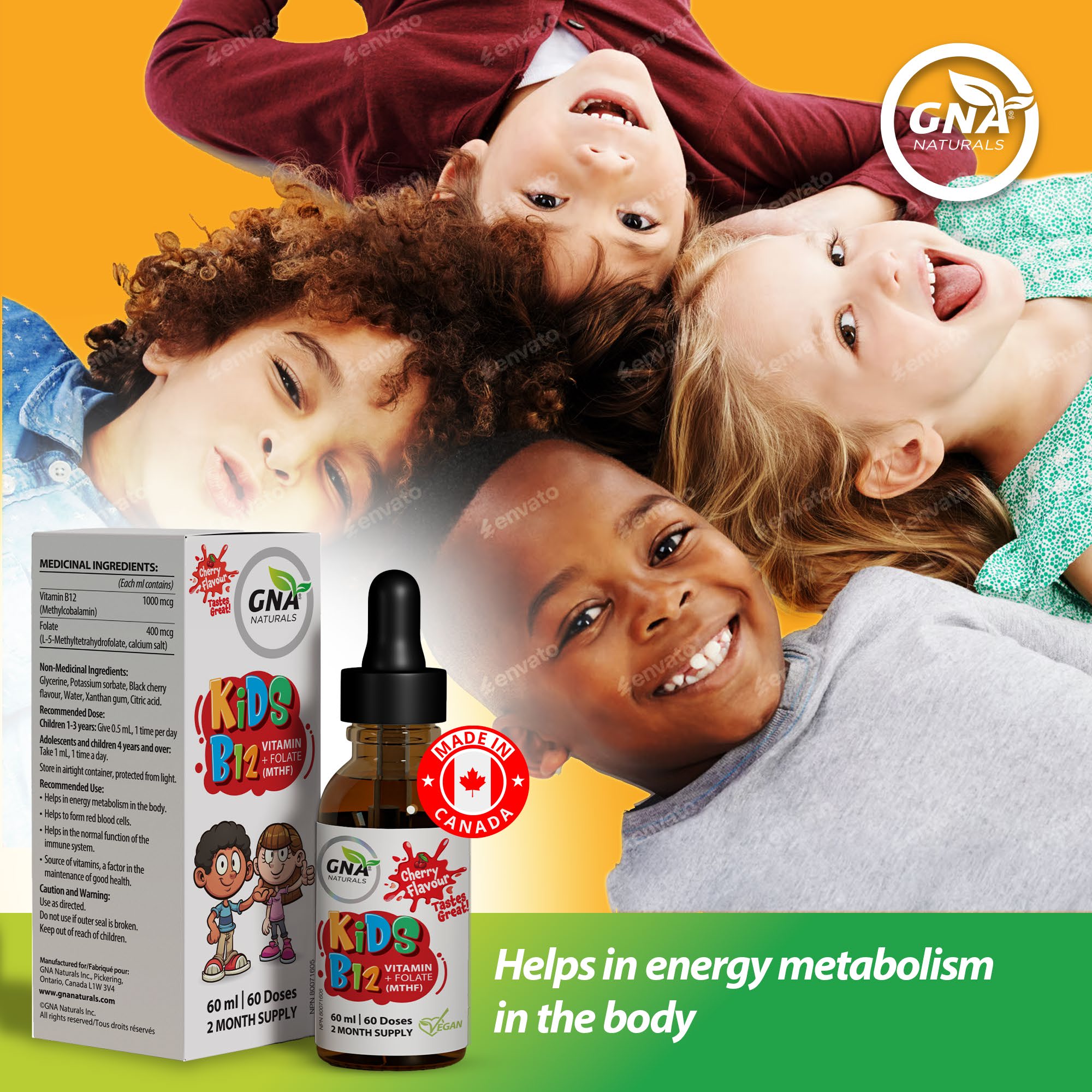 - BIOACTIVE FOLATE + B12 Vitamins ORGANIC: GNA Natural Kids Liquid delivers L-Methylfolate, the active, bioavailable form of folate that’s ready for the body to use—ideal for children with MTHFR gene variations. Combined with methylcobalamin B12, this formula supports healthy methylation pathways to help nourish brain and nervous system development